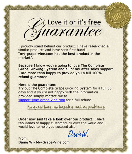 I understand that I can request a full refund at anytime during this period if I think that The Complete Grape Growing System is not worth my small investment